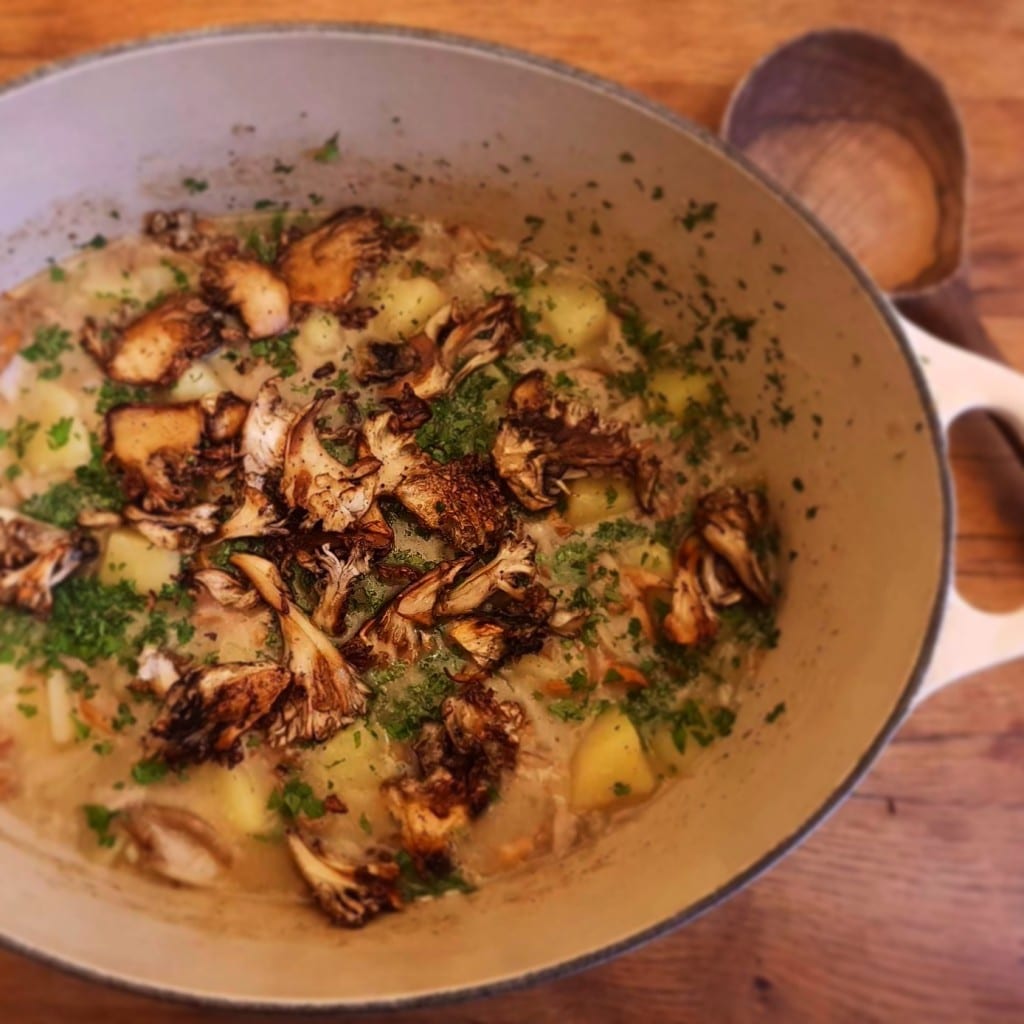 750 gr. mixed wild mushrooms like chanterelle, trumpet de noir, shiitake, seps etc. cleaned and cut to bite size pieces
